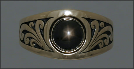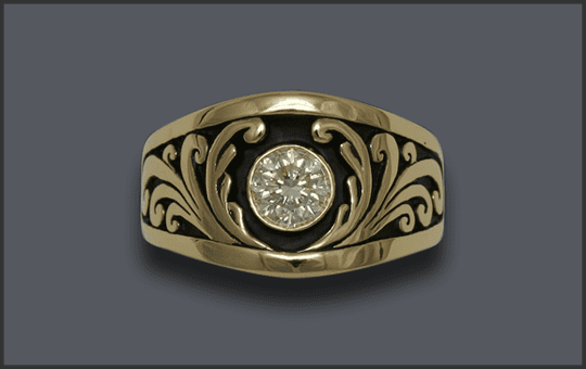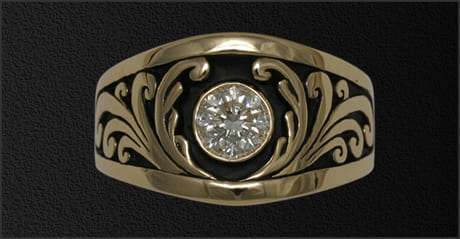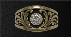 14k MEN'S custom 1 ct diamond scroll ring - shown with customer's diamond