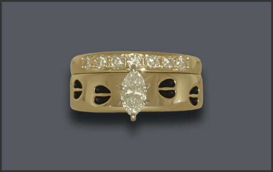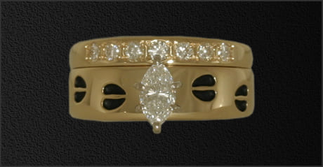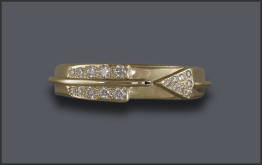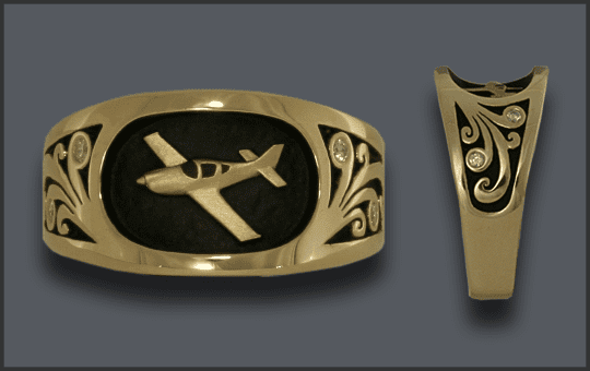 This customer actually built his own Glasair airplane so his wife had Frank remake his wedding ring using the gold and diamonds from his original broken wedding band.