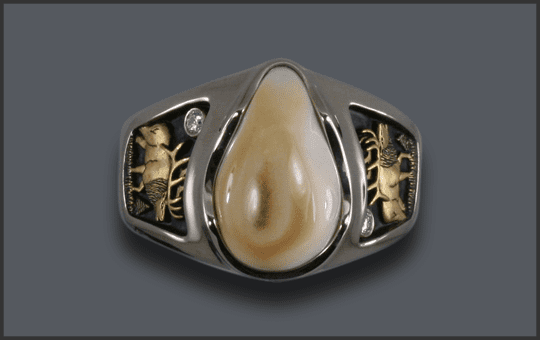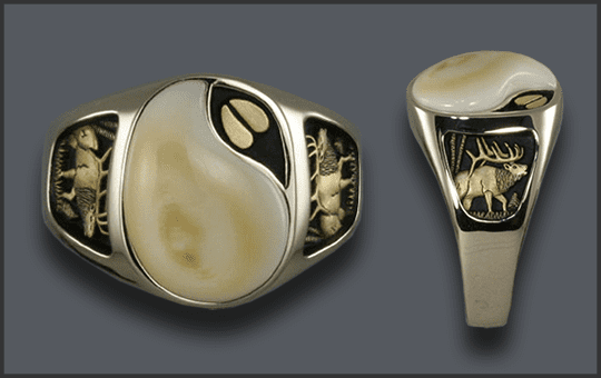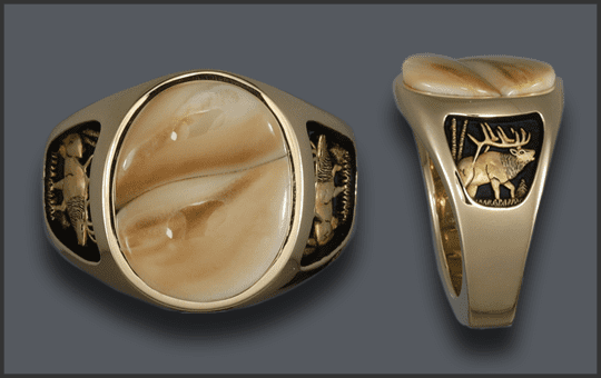 14kt MEN’S custom Double Elk ivory ring using both of the customer's ivories