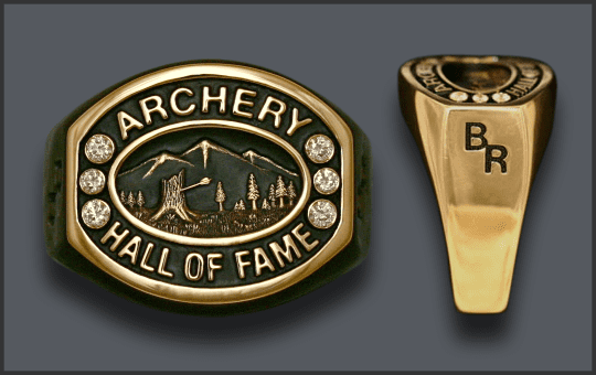 14k MEN'S custom archery hall of fame ring with customer's initials on sides