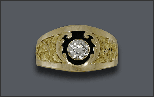 14k MEN'S custom 1 ct diamond nugget ring - shown with customer's diamond