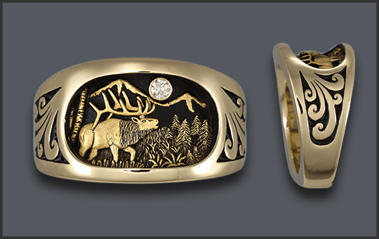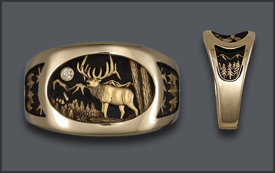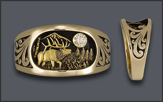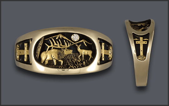 14kt MEN’S ELK RING CUSTOM