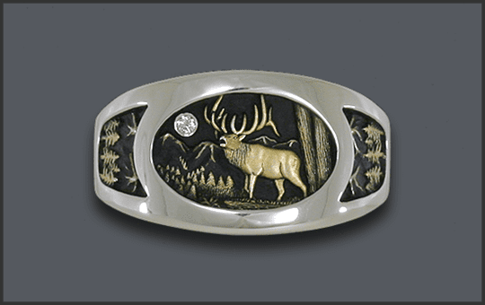 with Bull Elk on Each Side - Shown with 2ct Diamond