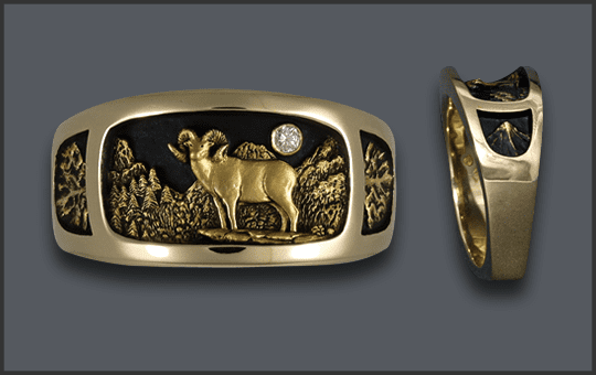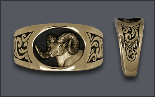 14kt MEN’S RAM SCENE RING
