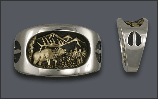 14kt MEN’S ELK RING WITH TRACK ON SIDES